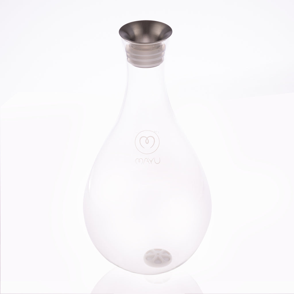 Die MAYU SWIRL Ersatz-Glaskaraffe aus Borosilikat-Glas wird geliefert inklusive Edelstahl-Ausguss und einem neuen freischwingenden Wirbler-Einsatz. Kompatibel mit den bestehenden Ladestationen.