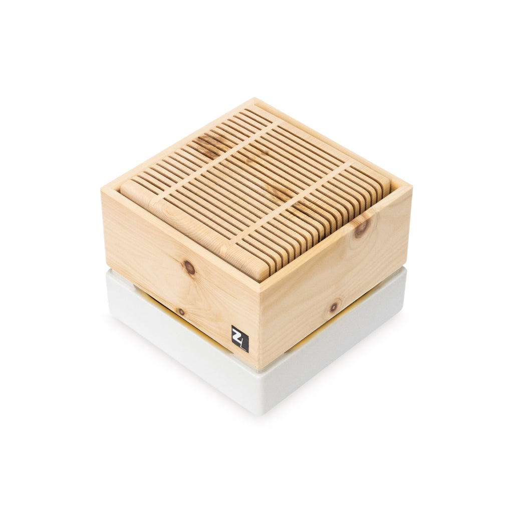 • Das Herzstück der neuen ZirbenLüfter® CUBE II und CUBE mini II sind die speziell dafür entwickelten Lamellen aus österreichischen Zirbenholz. Die Raumluft wird regeneriert und mit den positiven Duftstoffen der Zirbe angereichert.