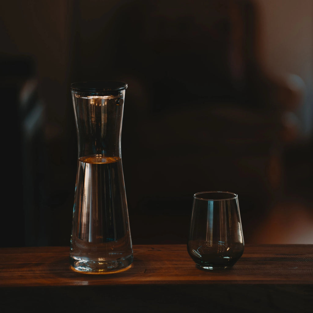 Die Sonnenglas® Lichtkaraffe ist eine Wasserkaraffe, die sich mit dem Sonnenglas SOMO Solarlicht in eine Tischlampe verwandeln lässt..