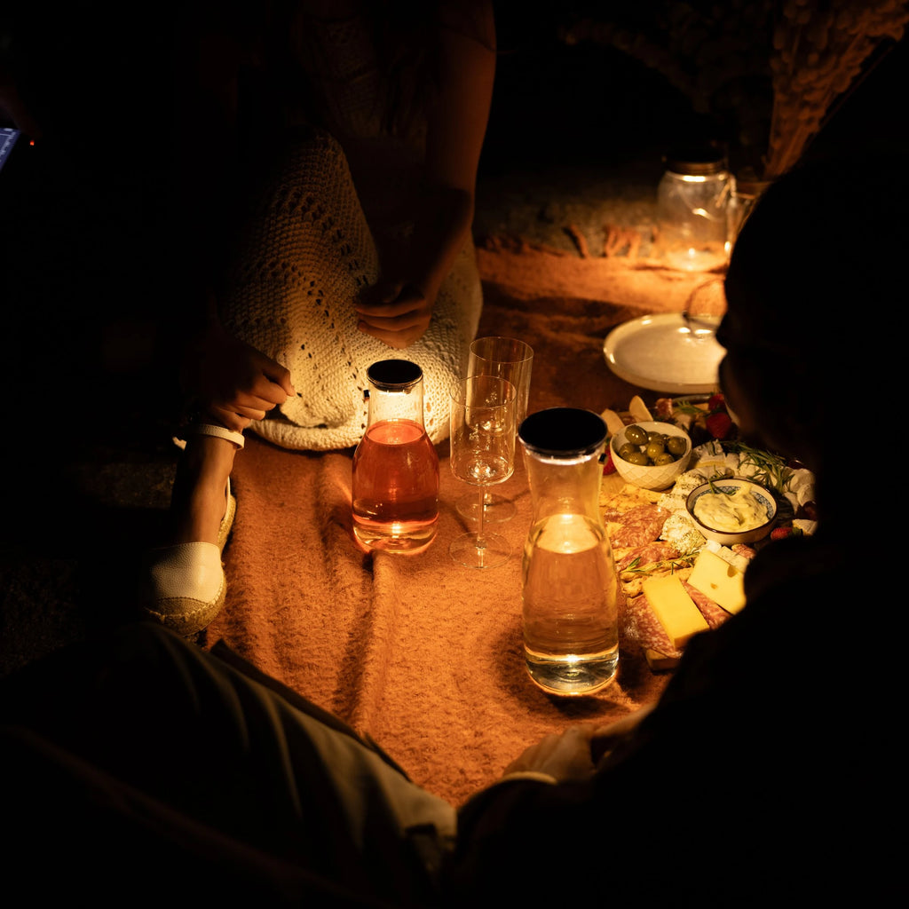 Bringen Sie die Lichtkaraffe magisch zum Leuchten, indem Sie das Solarlicht einfach umdrehen. Beleuchten Sie Ihr Zuhause, drinnen wie draußen, und schaffen so eine spezielle Atmosphäre bei Abendessen, Gartentreffen und Partys.